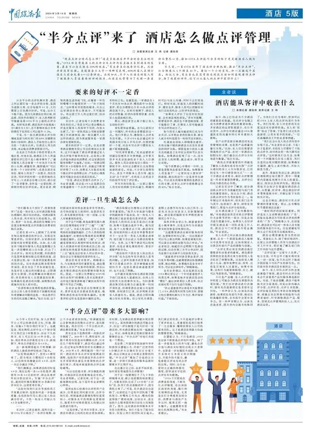公司于海波副教授在《中国旅游报》中发声:《“半分点评”来了 酒店怎么做点评管理》