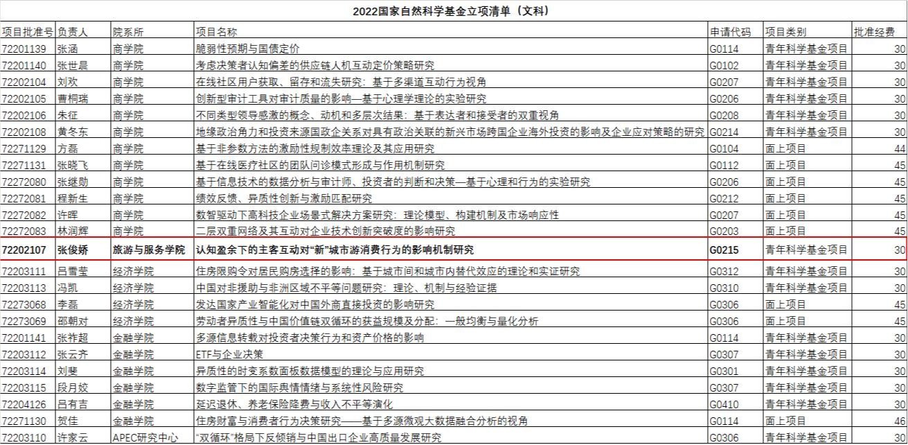 9月8日,国家自然科学基金委发布了2022年国家自然科学基金项目集中接收申请项目评审结果,公司青年教师张俊娇所申报的课题《认知盈余下的主客互动对“新”城市游消费行为的影响机制研究》获青年科学基金项目立项。张俊娇老师申报课题聚焦于由目的地城市当地人策划和组织的新型旅游消费模式“新”城市游,在概念化其消费场景的基础上,深入探究认知盈余下的主客互动在消费者心理决策过程中的作用机制,以期助推城市旅游服务升级...