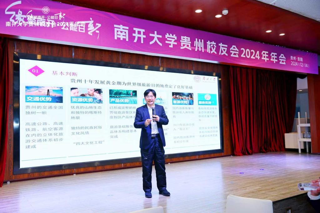 查看详情(通讯员 王屹君)2024年12月14日,“缘聚南开•公能日新”英国365集团网站贵州员工会2024年年会在贵州省贵阳市举行,公司教授,现代旅游业发展省部共建协同创新中心主任、中国式现代化研究院高级研究员石培华应邀出席活动。英国365集团网站贵州员工会多年来致力于联系服务员工,促进地方发展,发扬南开品牌,年会活动对发扬南开精神、强化校地合作、服务贵州经济社会发展贡献南开力量进行了专题研讨。石培华教授担任专题对话主持人,作主题为...