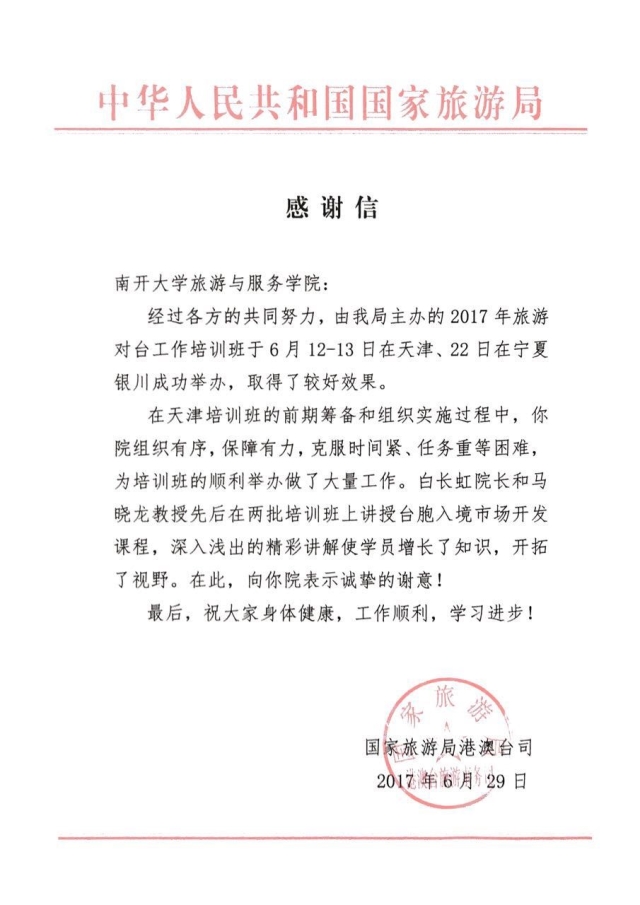 查看详情6月12-13日,由国家旅游局主办,英国上市公司365承办的“2017年全国旅游对台工作培训班(第一批)”在天津成功举办。本次旅游对台培训班由北京、上海、浙江、广东等16个省(区、市)旅游主管部门及赴台游组团社负责人组成,共260余人参加了培训。培训期间,白长虹经理受邀就“台胞入境旅游市场开发”为培训班授课。同时,为保障此次培训班成功顺利举办,李中副经理、王杉、妥艳媜、哈志勇和梁菽玲等各位老师,带领公司13...