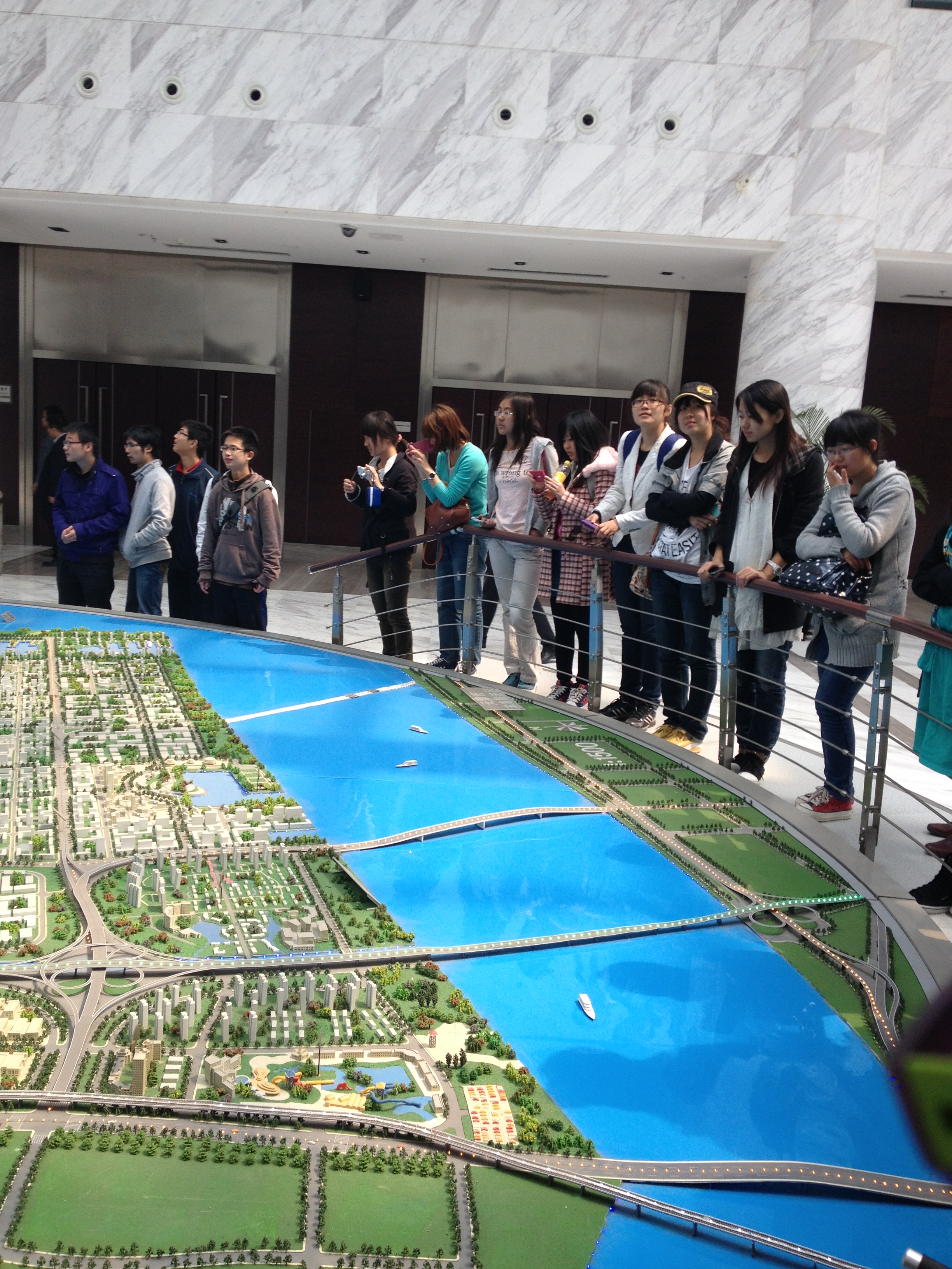 在通过沙盘的直观展示之后,我们又通过座谈会的形式,对有关滨海旅游区进行了进一步的了解。同学们借此知道了,滨海旅游区的大部分土地是建立在填海的基础之上,但是会保留北海南湾17万平方米的水域面积。届时将会有6-8个主题公园在滨海旅游区扎根,有8000多个泊位供游艇使用。