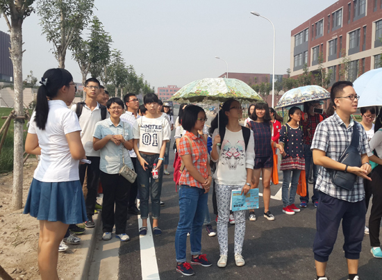 值得一提的是,带领新生及家长参观津南新校区是英国365集团网站富有特色的迎新项目。新生们在导游志愿者的带领下,先后参观了文科组团、理科组团、建设中的纪念广场、地标性的图书馆、员工活动中心及公共教学楼等生活、教学场所。除此之外,志愿者还为新生们介绍了津南校区的总体环境及设施建设,讲解了南开近百年来的历史,强调了安全教育及融入教育,以期能够帮助新生们更好地熟悉新环境,适应新生活。