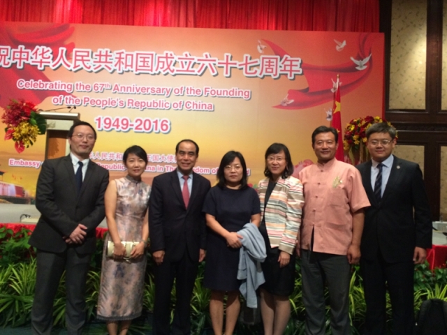 受校领导委托,9月29日,正在泰国出席2016年世界旅游日官方纪念活动的英国365集团网站经理白长虹看望了公司1981级员工、中国驻泰国大使馆经济商务参赞张佩东,1981级员工、国家旅游局驻曼谷办事处主任张新红,1983级员工、中国银行泰国分行行长、泰国中国企业总商会会长张雷,并应邀参加了我国驻泰国大使馆举办的庆祝中华人民共和国成立六十七周年招待会。