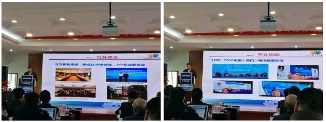在上午的会议中,首先由中国太平洋学会会长、国家海洋局原副局长张宏声作了2016年学会工作报告,报告中尤其列举了公司中国海洋旅游专业委员会所取得的一系列成果,充分肯定了为中国太平洋学会2016年工作所起到的显著贡献意义。接着关道明、李培英等五位来自不同单位的研究员做了各自的相关研究报告,探讨了关于渤海生态环境状况与管理对策研究、海岛保护管理与海岛旅游等方面的问题。