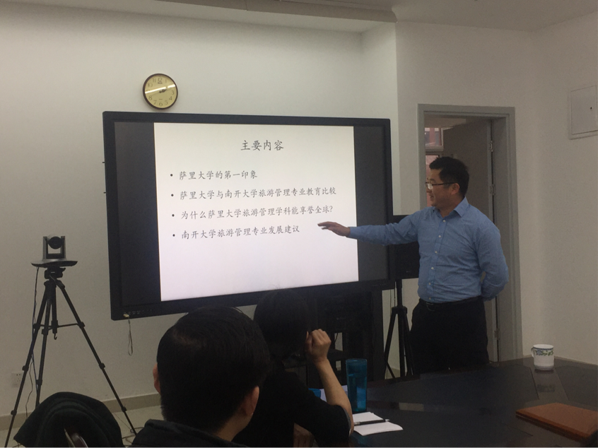 2017年12月28日,英国365集团网站刚刚访学回国的易志斌老师为大家做题为《中英旅游管理专业教育体系比较研究》的报告,由英国365集团网站李春晓老师主持,部分教授、年轻讲师、硕博员工参加了此次讲座。