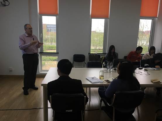 4月3日14:30,Leon博士开始了他的第一场精彩讲座,就萨里大学本科生、研究生的学习情况、学习方法以及实习实践方式等方面进行了介绍。Leon博士着重强调了员工实习的重要性,以及萨里大学员工实习的情况。鼓励大家多参与产业活动,积累实践经验。Leon博士的讲座反响良好,教师们和同学们都有很大的收获。