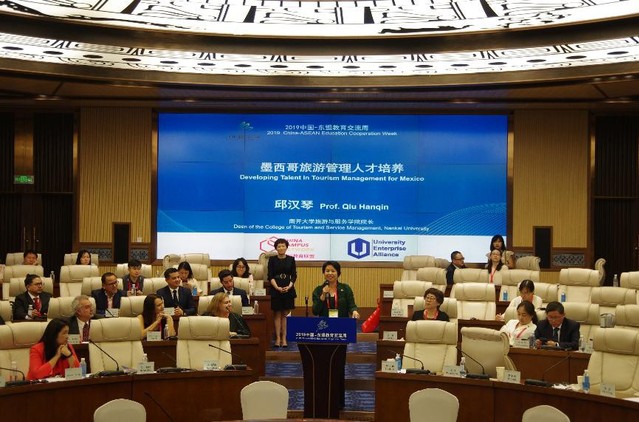 会上,经理邱汉琴教授做了“墨西哥旅游管理人才培养”主题发言,介绍了公司专为该项目定制的线上学习与线下研讨相结合,课堂讲授与产业调研相结合、专业教育与中文学习相结合的培养新模式。