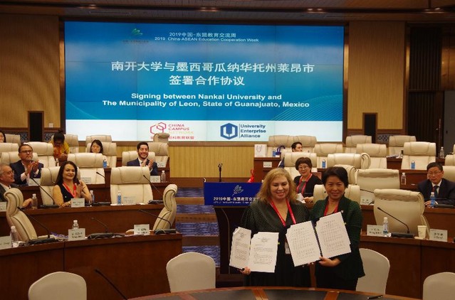 签约仪式在2019中国-东盟教育交流周期间举行。本届交流周以“深化务实合作,共享发展成果”为主题,为中国与东盟及“一带一路”建设沿线国家搭建教育合作、人文交流、互学互鉴、合作共赢的平台。