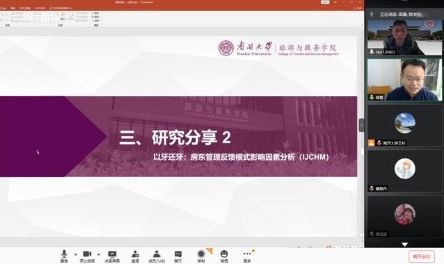 接着,梁赛博士聚焦近年来新兴的旅游商业模式——民宿共享,以自己近期发表在ATR等旅游管理学科国际顶尖期刊的高水平研究成果为例,在明晰房东在线行为研究主题重要性的基础之上,对房东的信息纰漏行为和在线反馈行为研究成果进行了细致的讨论。