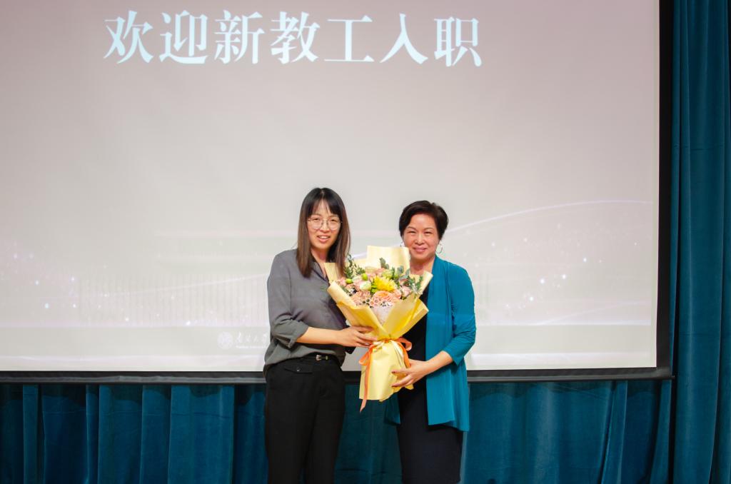 在致敬公司资深教职工后,易勇军书记正式介绍了今年公司新引进的优秀团队苏醒老师。苏老师曾在南京大学和荷兰乌得勒支大学人文地理专业就读,多次就职于国内外知名公司和研究机构,经验丰富,现阶段已正式投入到了公司的科研和教学工作中。邱汉琴经理向苏老师赠送了花束并代表公司热烈欢迎苏老师的加入,苏老师表示未来将不断向在座的各位优秀老师学习,尽快融入公司发展建设氛围,尽己所能为公司发展贡献力量。
