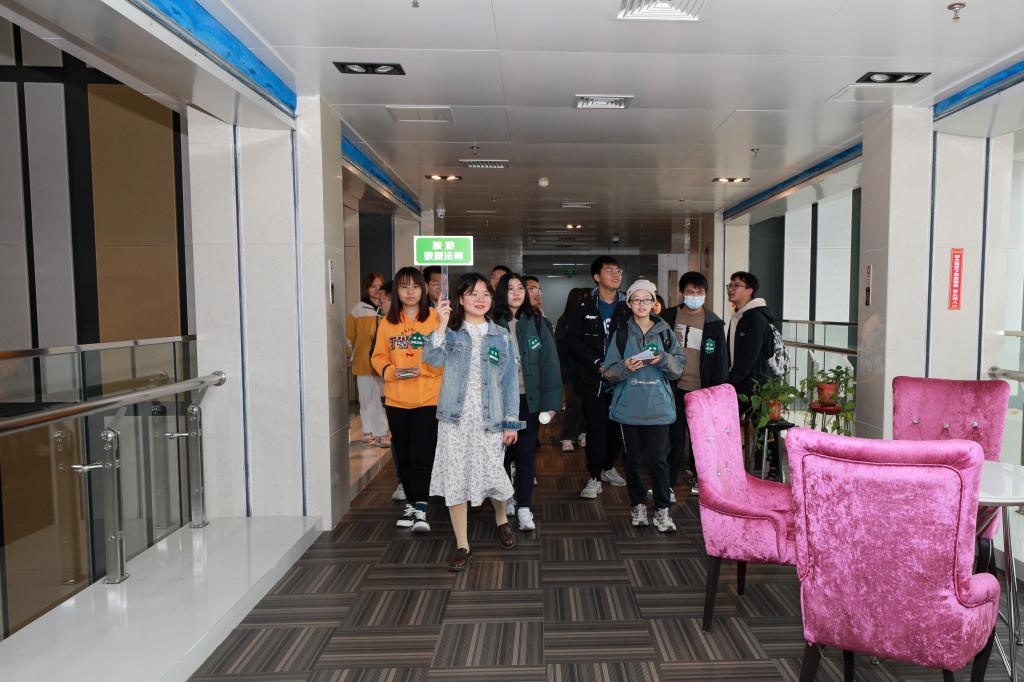 讲座最后特别安排了线上抽奖环节,公司为同学们精心准备了小礼物,讲座在欢声笑语中结束。随后,参与本次活动的所有员工在志愿者带领下有序参观了公司楼,成红波、李晓义等老师分别在各实验室为员工讲解教学专用设施设备。同学们纷纷表示公司温馨且富有创意和特色的共享学习空间和楼道文化令人印象深刻。