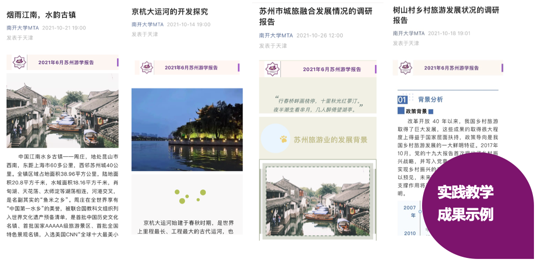 《产教融合背景下MTA多元化实践教学的一体化探索和实践》是焦彦、黄晶、姚延波、陈宇佳等老师在既有多元实践教学经验的基础上,以MTA员工的专业实践能力提升为目标,在认真梳理不同实践教学活动的教学规律和系统分析不同产教融合的互补优势之后,对多元实践教学活动所进行的一体化重构、设计和实施。该实践教学以专业核心课《目的地开发与管理》为依托,系统整合课堂导入、田野研学和成果转化三个阶段,最终实现了目标一体化、内容一体化、产教资源一体化和评估一体化的效果,不仅获得员工一致好评,而且实现了实践基地从“提供实习岗位”到“提供多元实践机会”的功能转变、业界导师从“接受实践教学任务”到“参与实践教学全过程设计”的角色转变,切实提升了MTA教育中产教融合的质量。