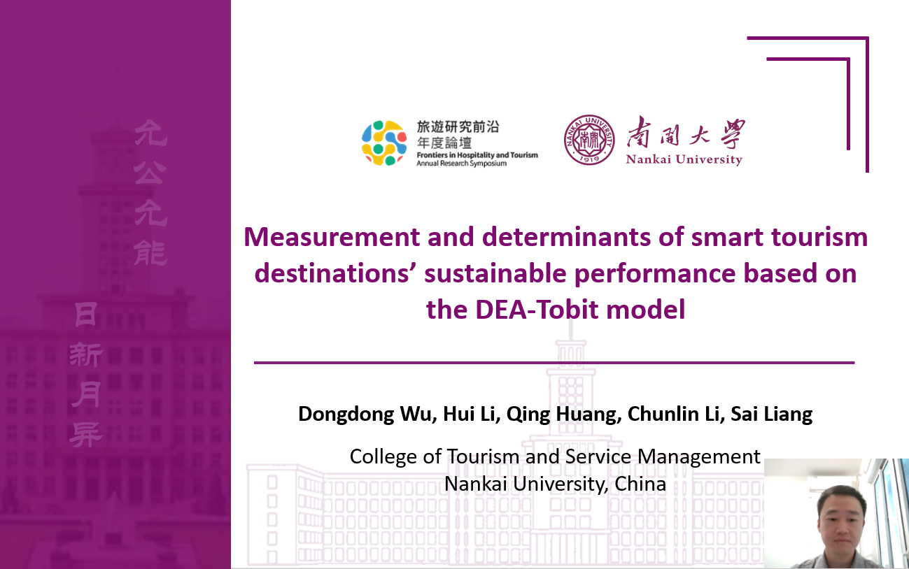 21级博士生吴栋栋和公司李辉教授等合作撰写的研究论文“Measurement and determinants of smart tourism destinations’ sustainable performance based on the DEA-Tobit model”获得年度最佳论文奖(英文)。 该研究构建DEA-Tobit两阶段分析框架,采用数据包络分析方法中的调整SBM-DDF模型来测度智慧旅游目的地的可持续发展绩效,进而分析游客在线搜索关注和目的地数字经济发展水平对智慧旅游目的地可持续发展的影响。