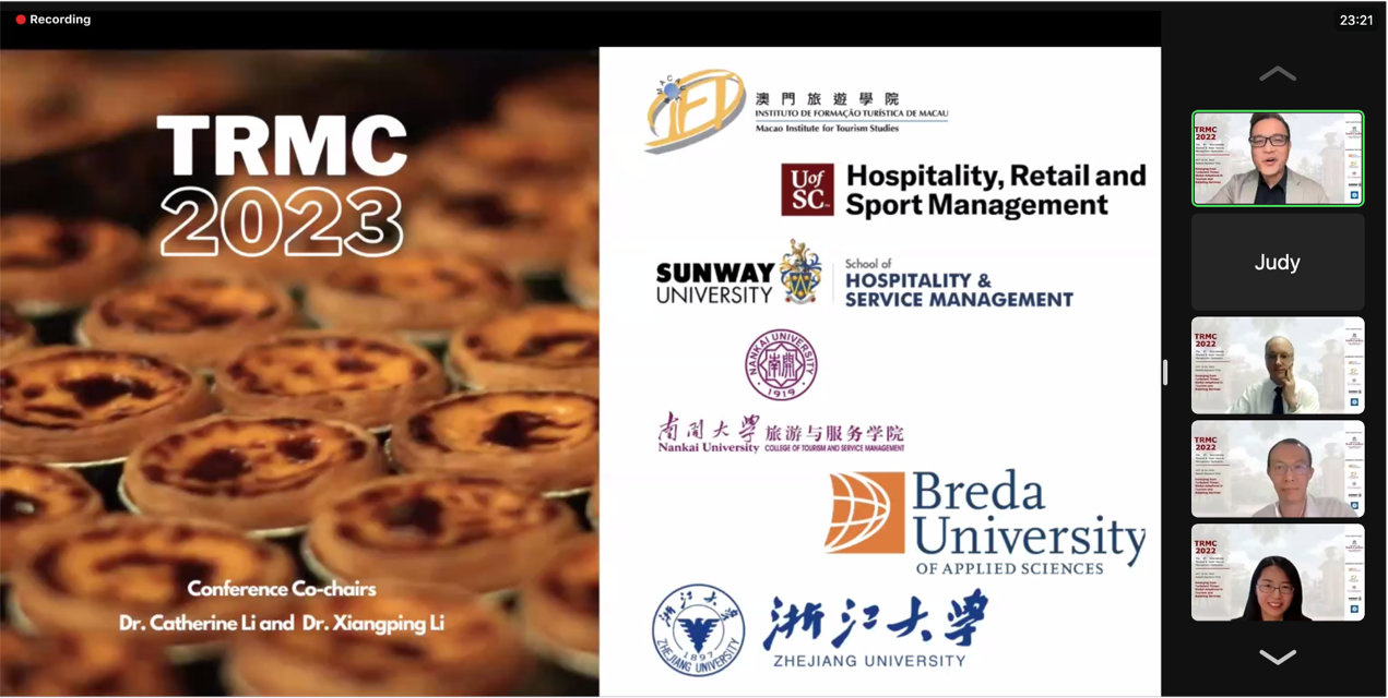 (通讯员 张俊娇 孙娴)2022年10月19-20日,由美国南卡罗莱纳大学主办,英国365集团网站联合澳门旅游公司、马来西亚双威大学、荷兰布雷达应用科技大学、浙大城市公司共同协办的第四届国际旅游、零售及服务业管理会议(the 4th International Tourism and Retail Service Management Conference,TRMC 2022)通过Zoom在线会议成功举办。本次会议的主题是“从动荡的时代中崛起:全球旅游与零售服务的韧性”,关注一系列有关行业变化和恢复力的重要话题:旅游和零售的挑战、消费者动机和体验、行业创新、营销新趋势、COVID-19的影响及应对方案等。公司师生参会热情高涨,超过50位师生参会,研究生报名参会人数达38名。