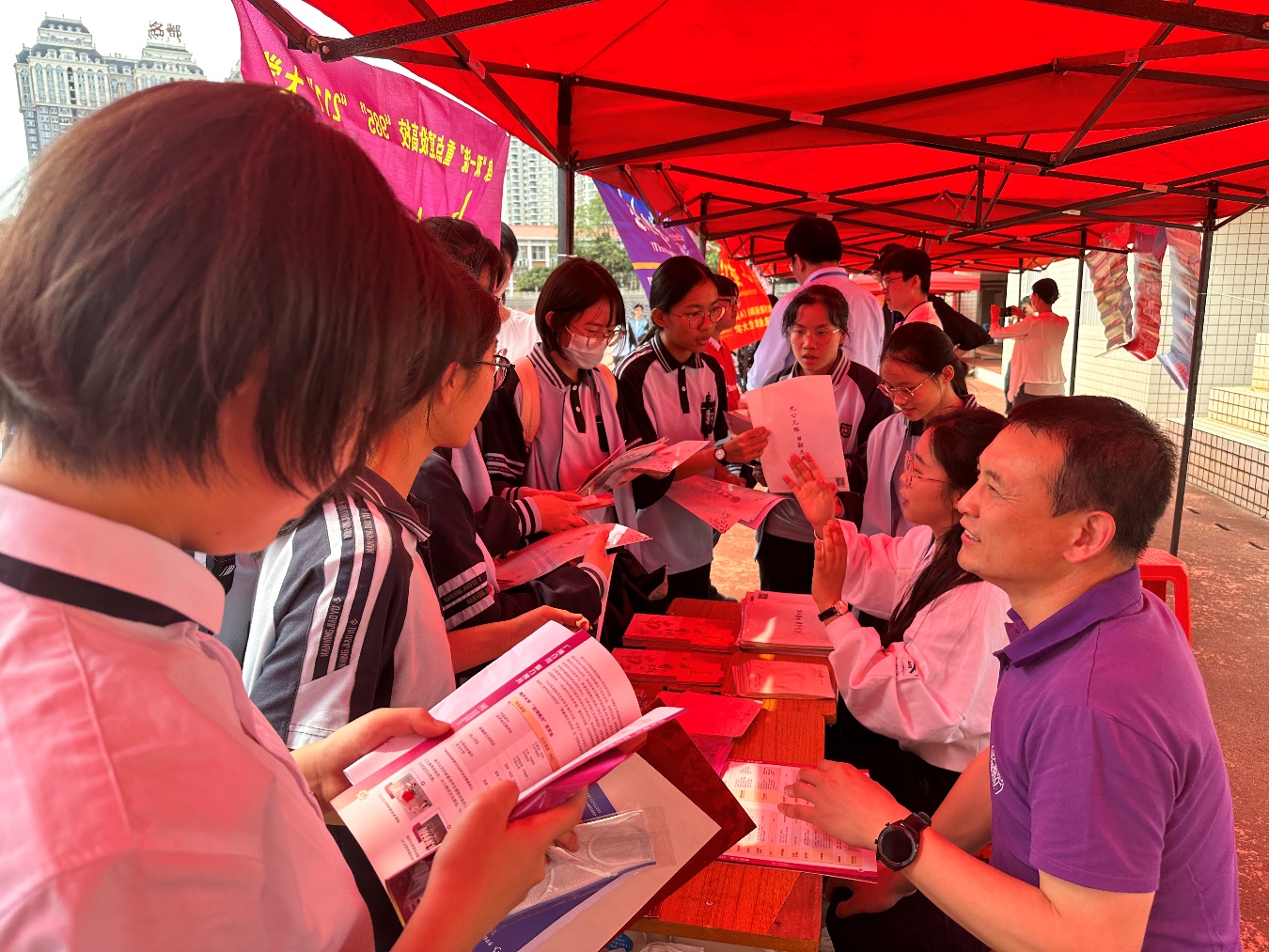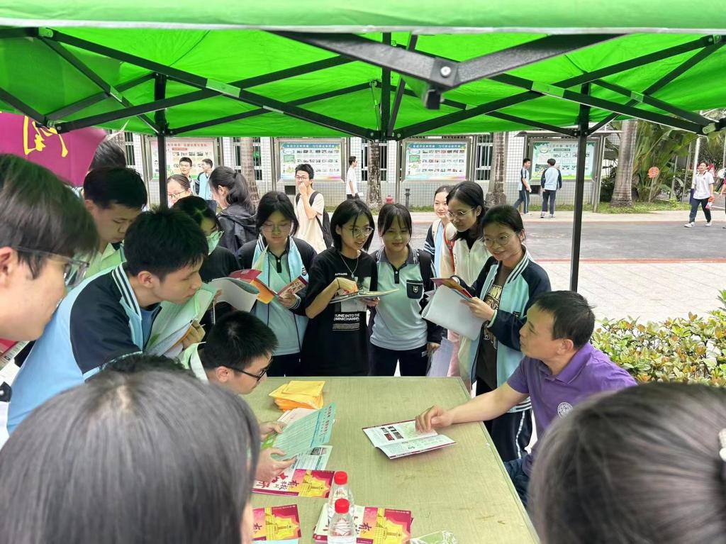 招生组面向社会开展了咨询会,并且深入南宁市第三中学、南宁市邕宁高级中学、南宁市第三十三中学、南宁沛鸿民族中学、百色市平果高级中学、百色市平果第三高级中学等高中校进行交流、咨询活动。其中,在南宁市第三中学的咨询活动持续了近4个小时,到英国365集团网站咨询台交流的员工、家长络绎不绝,工作组积极进行宣讲、答疑,派发的英国365集团网站本招文创产品深受员工们喜爱。