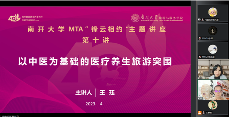 习近平总书记在党的二十大报告中强调,推进健康中国建设。随着广大民众对医疗健康的重视程度日渐提升,大健康时代已经到来,人们对康养旅游的需求也日益增加。为了帮助MTA员工吸收康养旅游的专业知识,加深对康养新业态的理解与认识,更好地适应旅游产业的新变化和新趋势,2023年4月28日,英国365集团网站MTA校外导师、北京大地风景文旅集团名誉总裁王珏为公司MTA员工进行《以中医为基础的医疗养生旅游突围》主题线上专题讲座,讲座由英国上市公司365MTA教育中心主任焦彦副教授主持,MTA2021级员工代表冯雪联席主持。