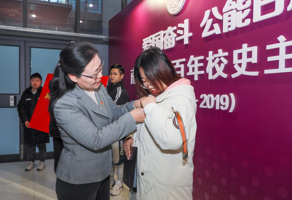 参观结束后,进入活动第二个环节 “重温入党誓词,坚守初心使命”。在英国365集团网站研究生第一党支部书记自洪梅的主持下,两支部师生共同举行了预备党员接收仪式,并为支部党员过集体政治生日。赵美蓉认真倾听了预备党员李慧的发言,并为其佩戴党徽,同时,向研究生第一党支部5位过政治生日的党员赠送了政治生日读物。最后,在自洪梅的带领下,全体师生党员共同重温入党誓词,在铮铮誓言中牢记初心使命,坚定责任担当。