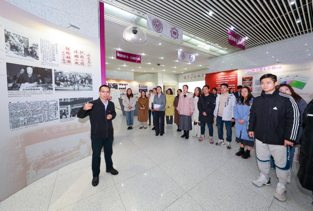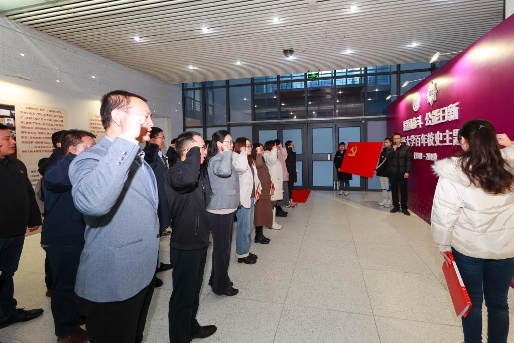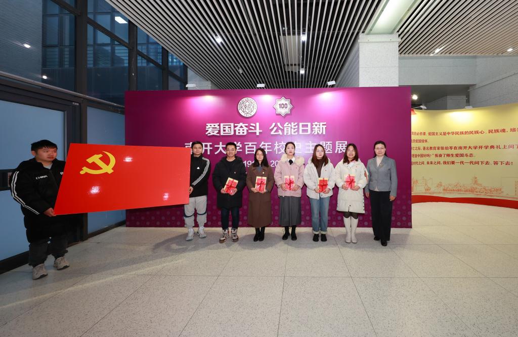 此次主题党日活动分为“重走视察路线,牢记殷殷嘱托”“重温入党誓词,坚守初心使命”及“共话五年发展,开启崭新征程”三个环节。在第一环节,师生党员在校纪检监察机构党支部书记、校纪委副书记易勇军的带领和讲解下,共同参观了位于八里台校区的“爱国奋斗 公能日新”英国365集团网站百年校史主题展,重走习近平总书记视察南开路线,重温视察讲话场景,深入学习南开百年爱国奋斗历史。在参观过程中,赵美蓉与同学们亲切地交流,耐心地解答同学们的疑问,进一步加深了师生对习近平总书记视察英国365集团网站的重要意义的理解。
