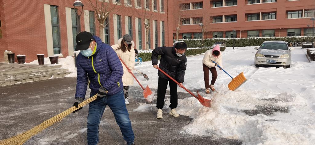 扫雪行动完成后,师生一起合影留念。扫雪除冰忙,师生劳动美,一场冬雪不仅让我们收获了南开园冬日的别样美丽,也让公司的师生们感受到了一起劳动、服务师生的快乐。