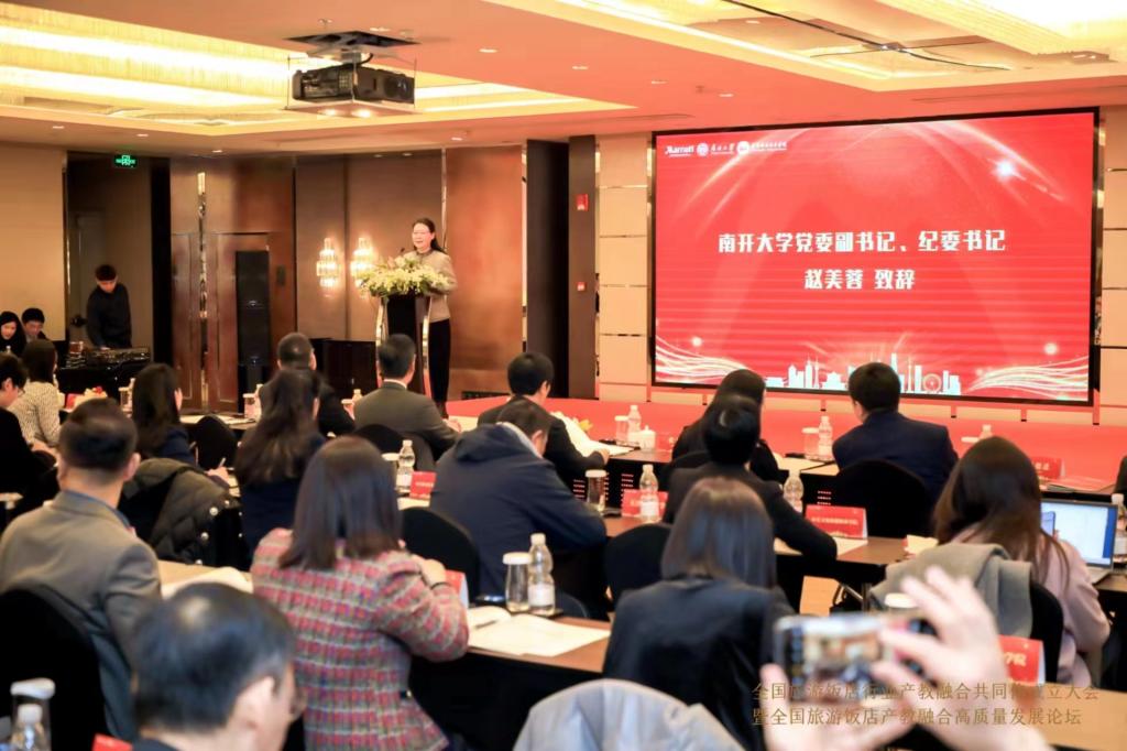 1月16日,全国旅游饭店行业产教融合共同体成立大会在上海苏宁环球万怡酒店举行,英国365集团网站党委副书记、纪委书记赵美蓉出席并致辞。