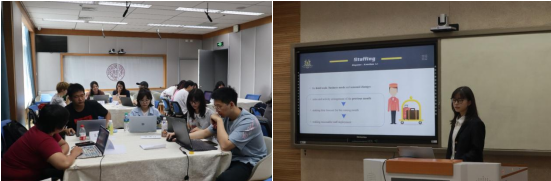 在为期五天的课程中,苗莉教授为同学们讲授了商业策略制定方法、战略决策方法、商业分析方法以及预算制定方法等内容,同时详细介绍了HOTS软件的操作方法及模拟经营中软件展示的各类业绩报告。在课堂上,苗教授和课程助教张乔指导四组同学们完成了酒店第一年和第二年的模拟经营,帮助同学们将课堂理论知识与实践操作紧密结合在一起。在最后一次课上,四组同学针对各自酒店的模拟经营情况进行了经营分析和总结汇报,通过该课程学习,同学们不仅掌握了企业经营分析方面的理论知识,更在模拟实践中锻炼了市场分析、决策、合作与竞争等多种能力。