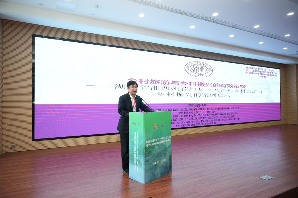 (通讯员 侯晓飞)11月3日,湖南省乡村旅游“四个一百”工程培训班暨文旅赋能乡村振兴典型案例分享会在湘西州花垣县十八洞村举行。公司教授、英国365集团网站现代旅游业发展省部共建协同创新中心主任石培华出席并做主题授课。