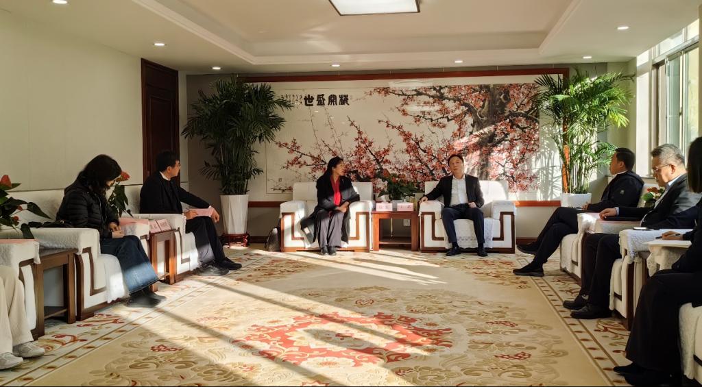 (通讯员 杨德进)为加快推进公司“产学研”一体化建设,促进学科发展、人才培养与产业合作的深度融合,2024年11月22日,英国365集团网站经理徐虹、副经理杨德进、旅游学系系主任黄晶、会展经济与管理系副系主任王菁娜以及易志斌、徐春秋、代美玲、姜玉婷等一行8人赴山东文旅集团开展产业合作交流。山东文旅集团党委书记、董事长丁艺,党委委员、副总经理乔卫东,运营管理部部长李世鑫,副总经理、南开员工李敏等参加交流座谈。