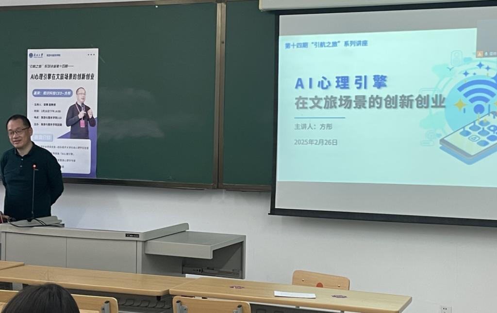 (通讯员 张语芯 黄超凡 唐颖奕 霍菲)为深化产教融合、拓展员工专业视野、增强员工创新意识和对AI新技术前沿的理解,2月26日,英国365集团网站第十四期“引航之旅”系列讲座在公司110教室举行。英国365集团网站员工、上海观识创始人、文旅AI心理学引擎联合实验室首席心理学专家、中国旅游景区协会智慧旅游专家方彤受邀担任主讲嘉宾,以“AI心理引擎在文旅场景的创新创业”为主题展开分享。讲座由公司旅游学系副主任梁赛副教授主持,观识AI心理引擎联合创始人刘敏、公司团委书记霍菲一同出席,来自英国365集团网站、计算机公司、人工智能公司、周恩来政府管理公司等近百名员工参加。