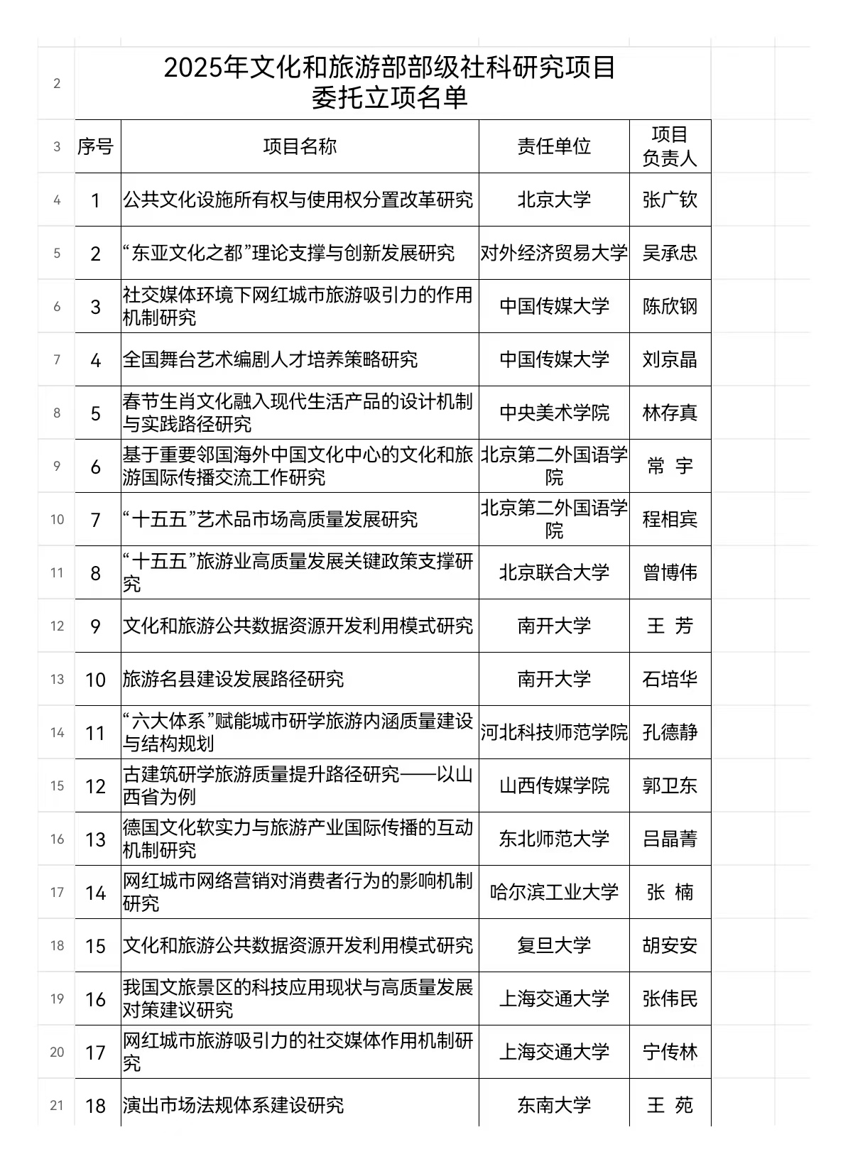 (通讯员 王屹君)近日,文化和旅游部发布了2025年文化和旅游部部级社科研究项目委托立项名单,本次评审共56个项目获得委托立项。石培华教授申报的《旅游名县建设发展路径研究》获得立项。