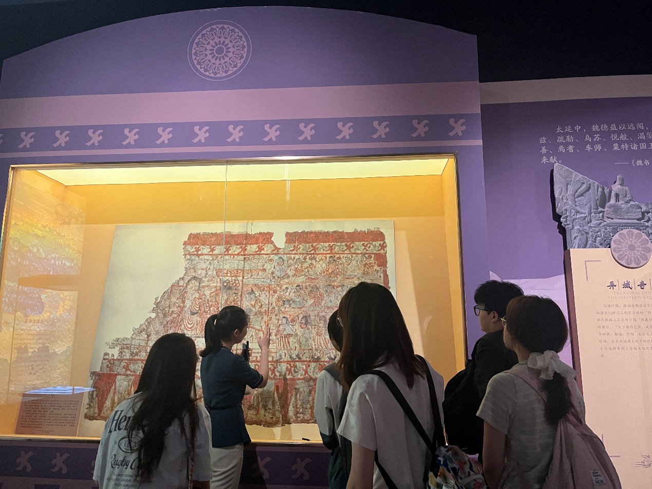 “同铸山河”展览聚焦北朝时期的民族融合与文化交流,精选百余件石刻造像、陶俑、壁画等珍贵文物,展示出北朝时期宗教艺术的发展风貌及其所承载的时代信息。同学们在参观过程中了解到展览如何通过时间线索与地域串联形成历史叙事,也感受到博物馆在展陈背后所做的策展设计与教育引导工作。