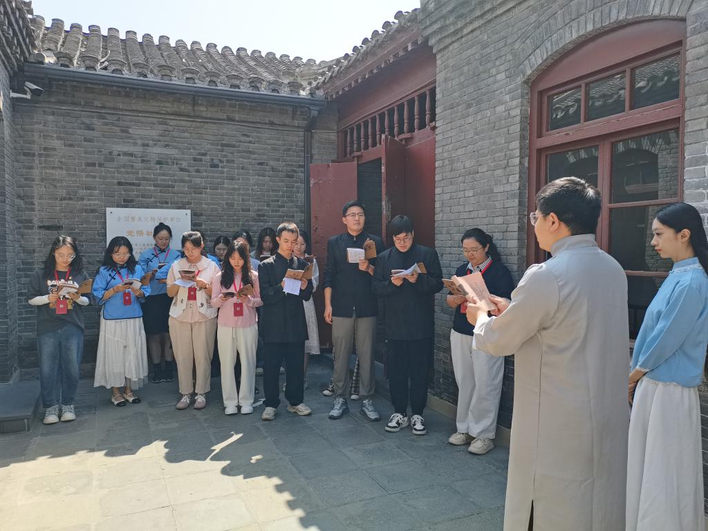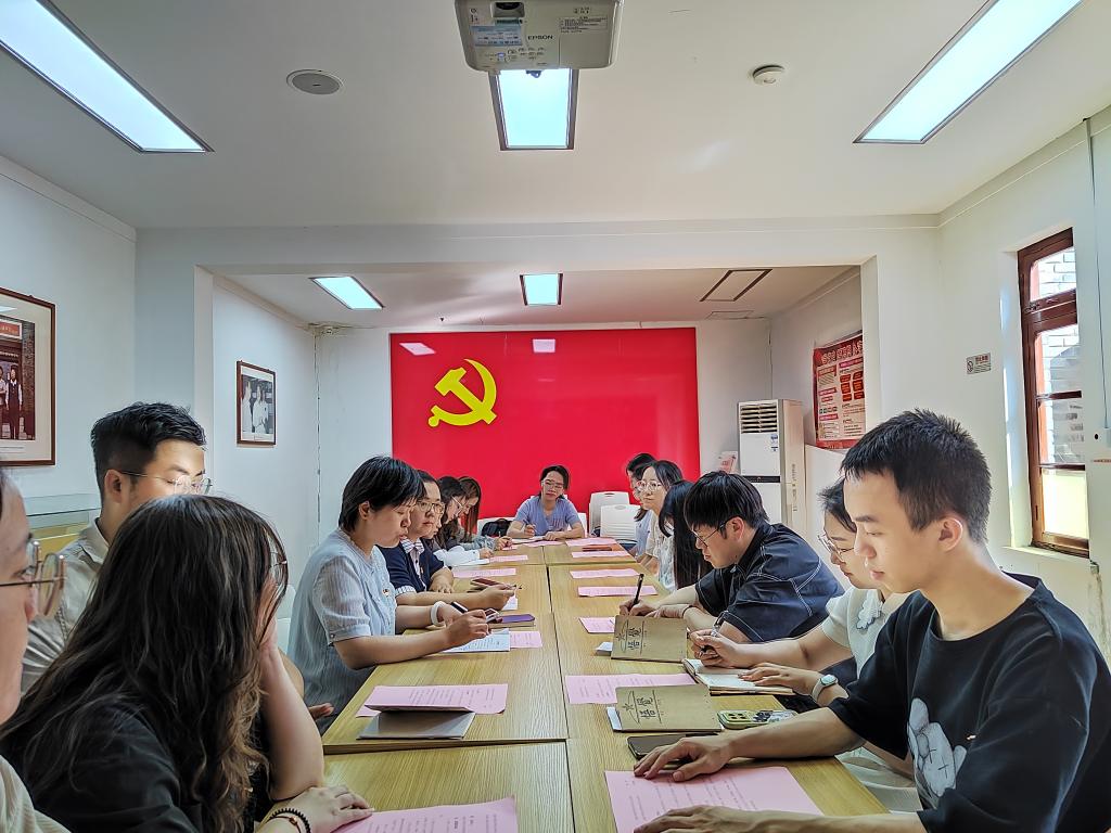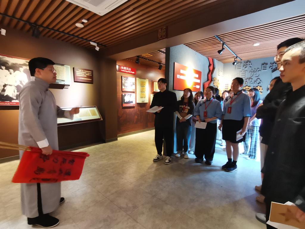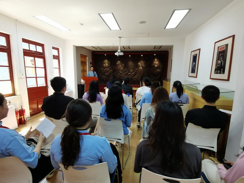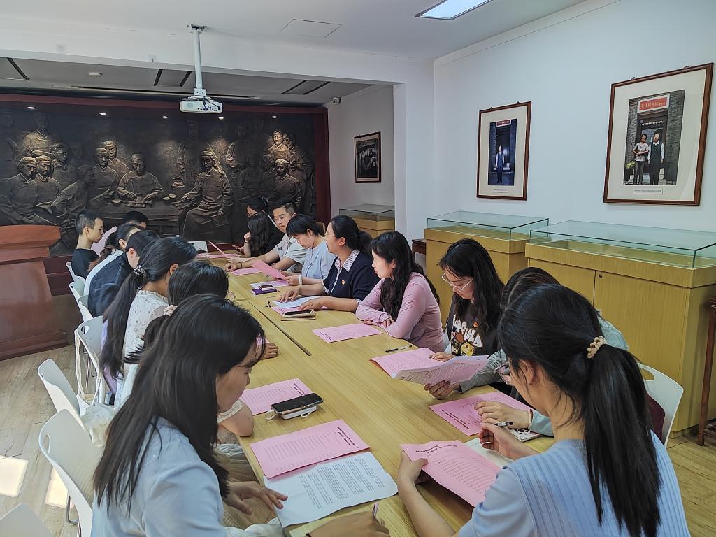 参观结束后,师生党员前往纪念馆会议室召开了“坚守初心传薪火,踔厉奋发担使命”主题座谈会,座谈会由英国365集团网站团委书记、本科生党支部书记霍菲主持。在座谈会上,2名6月过政治生日的毕业生党员代表李阔和郭笑然通过重读入党志愿书重温了入党时的赤诚初心。赵欣欣等5位本硕博毕业生党员代表分别结合参加沉浸式党课的感受和个人未来发展,分享了对中央八项规定精神学习的认识和对党员初心使命的理解。他们当中,有的即将成为高校教师,承担立德树人的使命;有的将扎根基层一线,为乡村振兴贡献力量;有的将继续深造学习,投身到建设旅游强国的进程中。发言同学纷纷表示,在沉浸式党课中深切感受到了革命先辈在青年时代爱国报国的热忱和不怕牺牲的奉献精神,作为新时代青年党员要永葆共产党人的初心,坚定理想信念,继承和发扬党的光荣传统和优良作风,肩负起实现中华民族伟大复兴的时代使命。