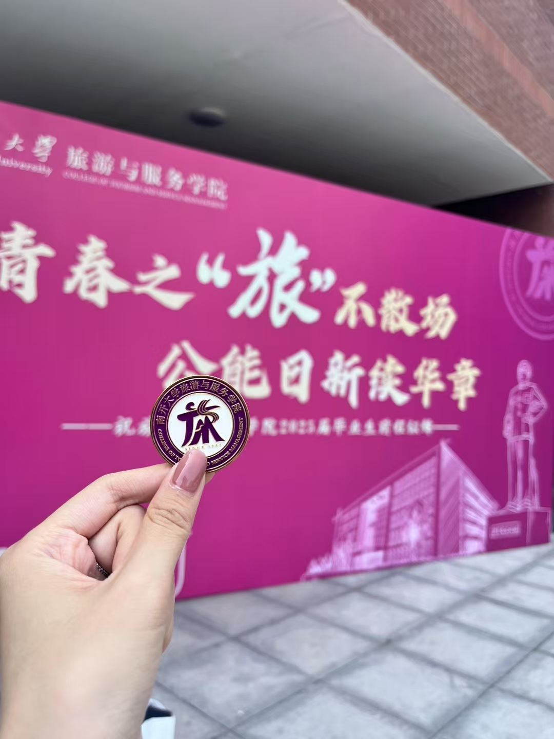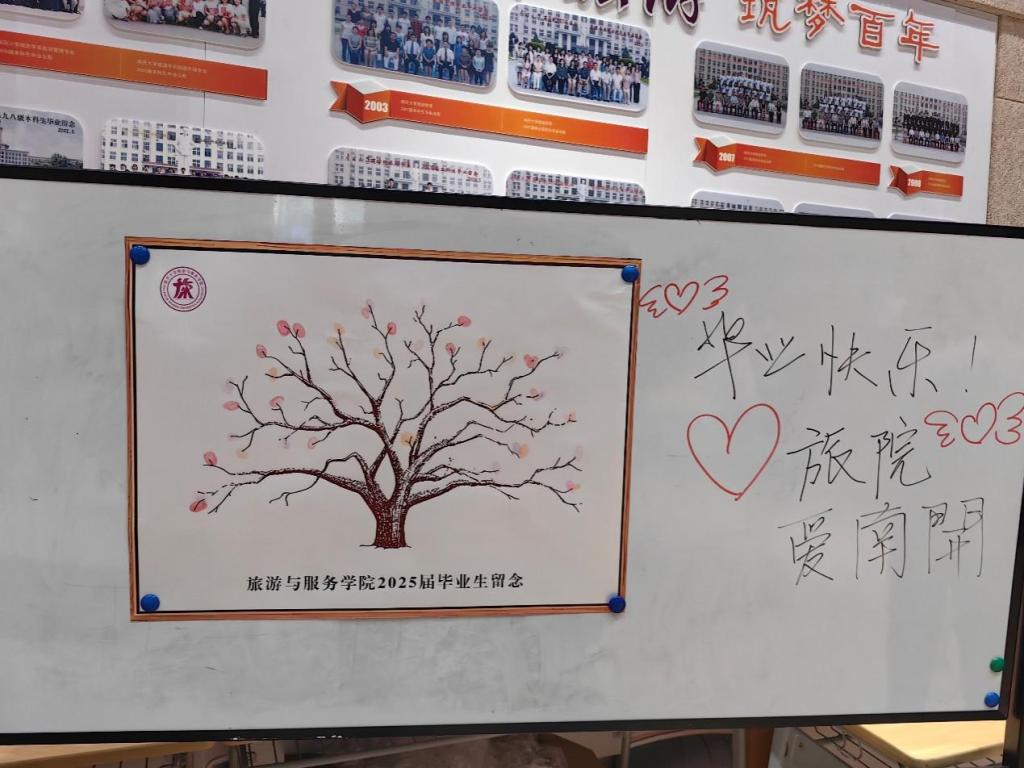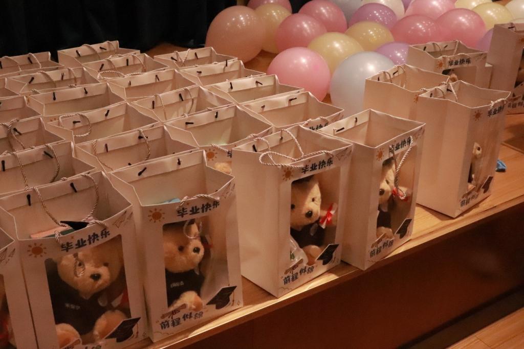 活动开始前,会场内循环播放着由毕业生们制作,满载着公司师生美好祝福的“情满旅院,南以离开”毕业视频。彩色气球、毕业专属标语以及一排排公司精心准备的毕业礼物,为现场营造了浓厚的毕业季氛围。