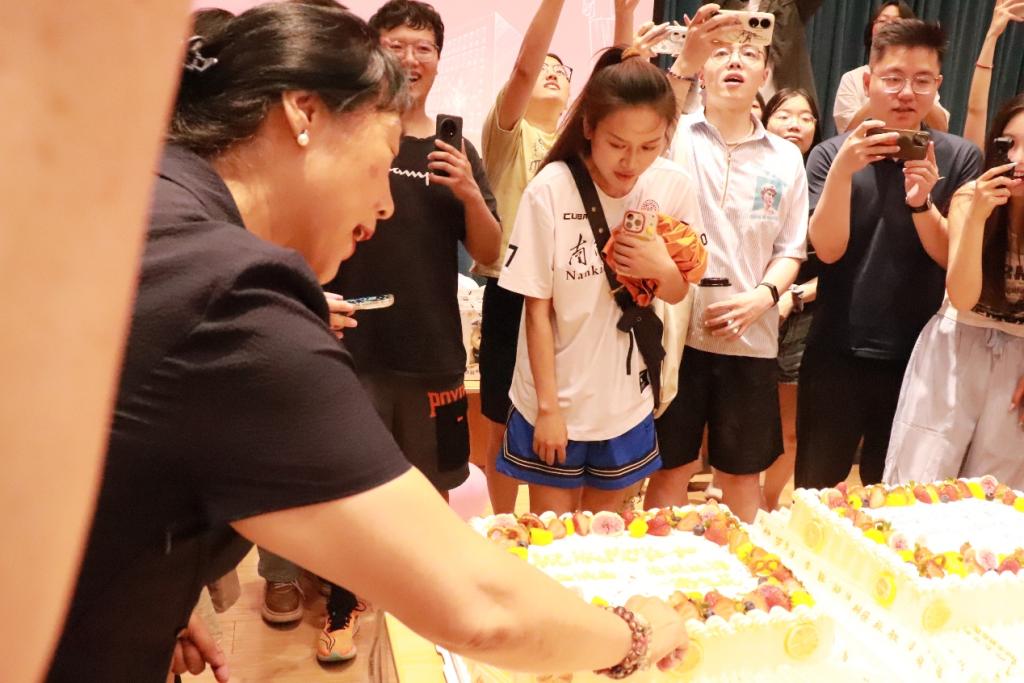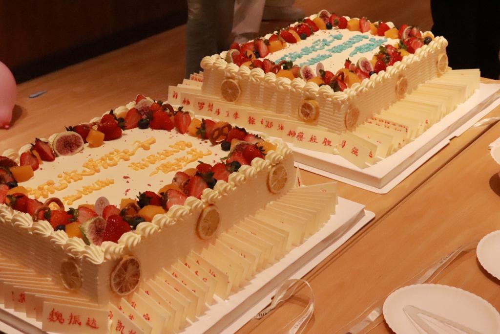 随后,两个写满了毕业生姓名的超大毕业蛋糕呈现在师生面前。院领导与毕业生们一同切下蛋糕,享受着毕业的甜蜜与快乐。