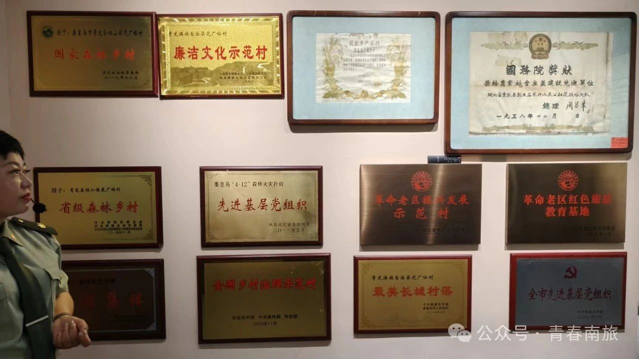 座谈会后,实践队在讲解员的带领下一同参观了村内党史馆。在花厂峪村所荣获各项表彰和荣誉墙上,师生们见到了有周恩来总理签字颁发给花厂峪村的“国务院奖状”,表彰花厂峪大队委农业社会主义建设先进单位。这让师生们倍感亲切,仿佛透过历史,接过了周恩来总理交给新时代南开人“报国力行”的接力棒。