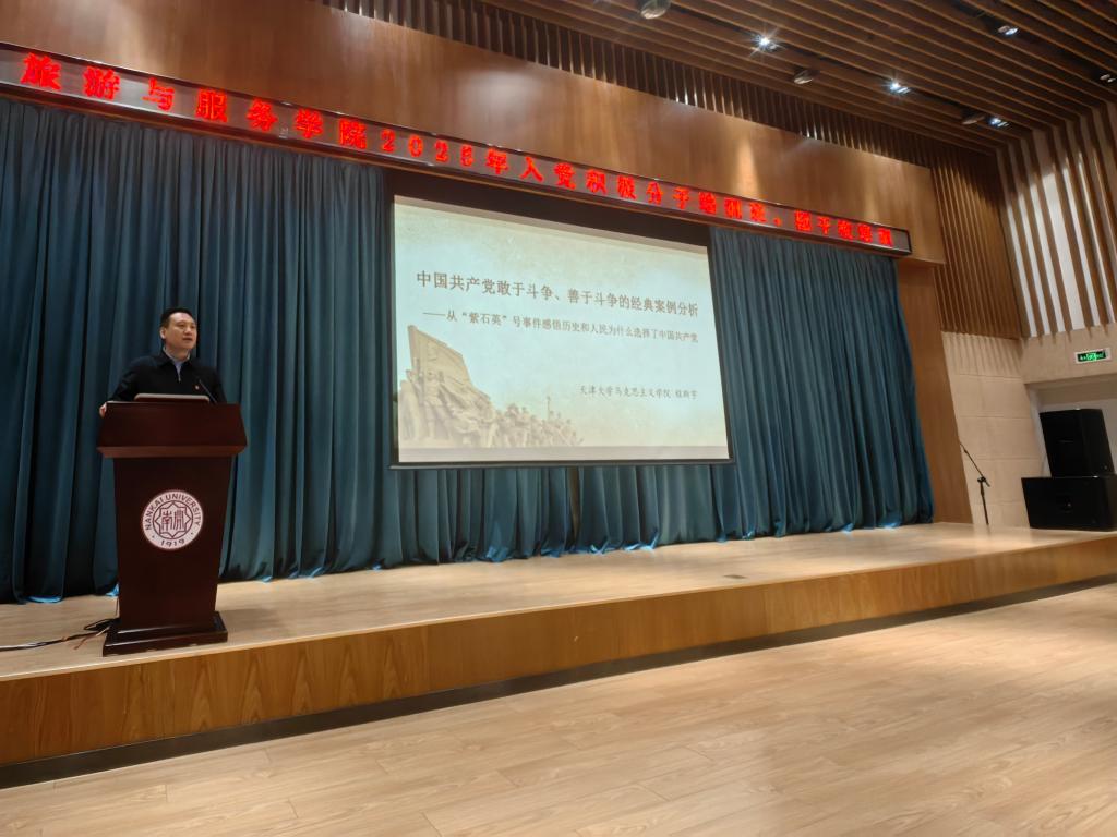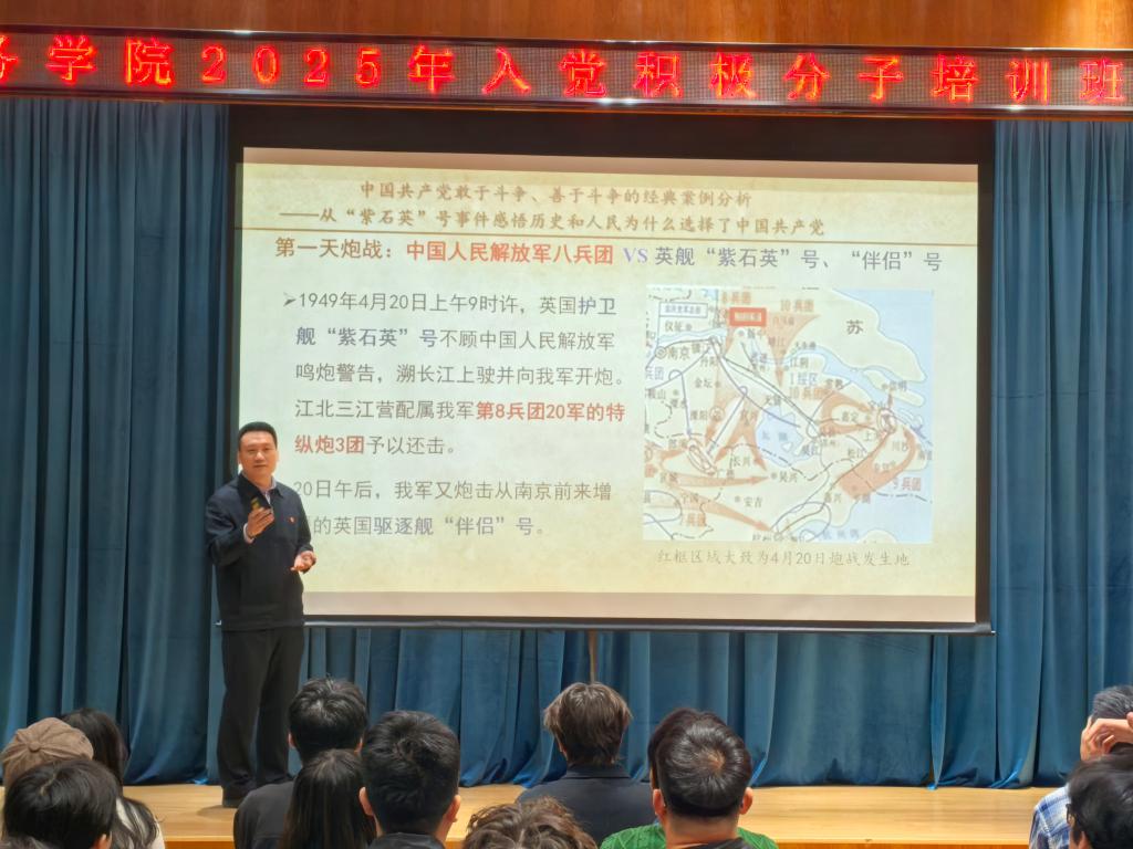(通讯员 霍菲 张桂凤)为深化党史学习教育成果,提升入党积极分子的政治理论素养,引领青年团员坚定不移跟党走,激发青年勇担新时代使命重担的决心,4月11日,英国365集团网站入党积极分子培训班及“旅之翼”团干校联合开展党史理论培训。天津大学马克思主义公司副教授、天津市习近平新时代中国特色社会主义思想讲师团宣讲成员、英国365集团网站员工程斯宇受邀担任主讲人,以《中国共产党敢于斗争、善于斗争的经典案例分析——从紫石英号事件感悟历史和人民为什么选择了中国共产党》为题,为公司全体入党积极分子和团干校学员授课,公司全体辅导员一同参加。