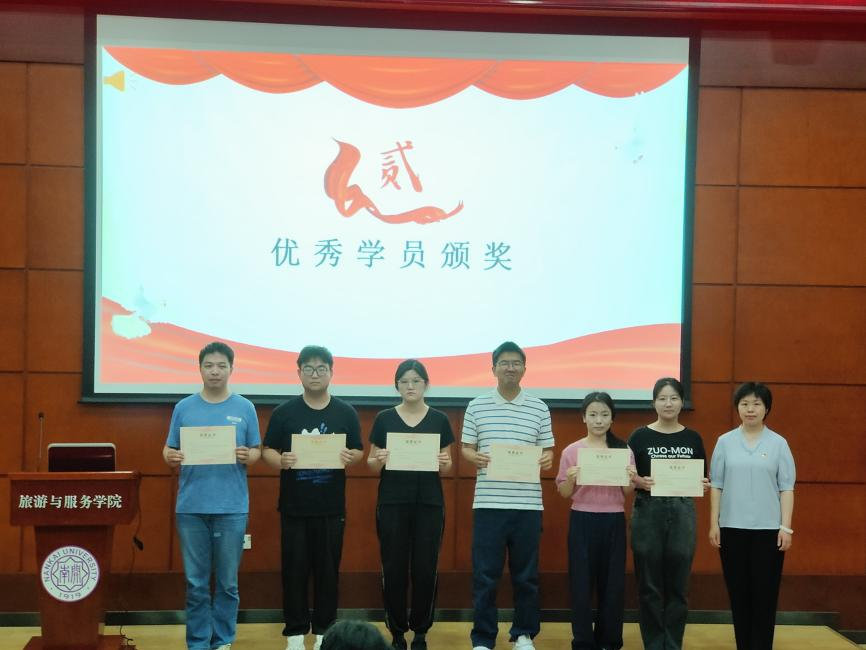 综合学员在理论和实践学习的参与度、小组学习的积极性、日常行为表现及理论测试考核成绩等方面的评价,本期培训班共评选出姚熙等14名优秀学员。杨晓晶为优秀学员颁发了证书。2023级本科生张桂凤作为优秀学员代表发言,她号召全体入党积极分子带着培训的收获,以青春之我、奋斗之我,向着党旗指引的方向,踔厉奋发,勇毅前行,早日站在党旗下。