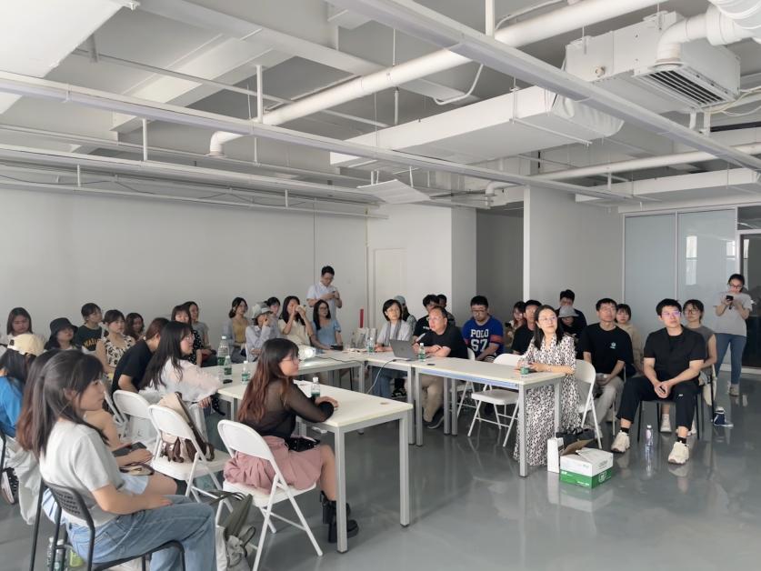 参观完毕后,智慧山文化创意产业园区创始人张伟力总裁为同学们做了题为《城市更新的长期路径:天津智慧山4.0产城融合之路》主题报告。他从智慧山的目标客群出发,指出智慧山目前主要面向数字内容、新媒体、广告创意、互联网科技型等企业客户,以及认可智慧山理念、能够传播生活美学的消费者和主理人,并且在未来将辐射在线上关注智慧山自媒体平台的广泛客群。张伟力总裁引导同学们代入消费者的角色介绍智慧山的融合业态,从上午看展到下午逛集市,不论是带娃还是吃喝打卡,智慧山都为年轻人带来了一个集“不刻意的美好”和“持续的新鲜”为一体的社交场域。谈到这样一个产、文、商、旅融合的街区是如何激发年轻人的创造力时,张伟力总裁指出,山丘广场的设计初心就是通过一系列巨大而有能量的活动来“造浪”,用整个园区的头脑激荡来激发澎湃的创造力。