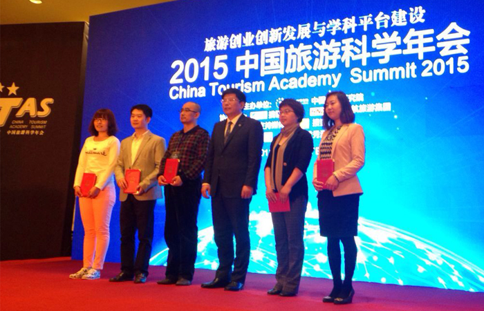 此次会议发布了2015年国家旅游局科研立项结果,公司杨德进老师申报的“民族地区旅游的城市化过程、影响与调控机制”课题获得立项。在年会优秀论文评选 中,公司邱玮副教授等提交的论文“旅游企业员工品牌化行为的形成机制”获得二等奖,陈晔副教授等提交的论文“旅游网站的粘性行为及其影响因素研究”获得三 等奖。