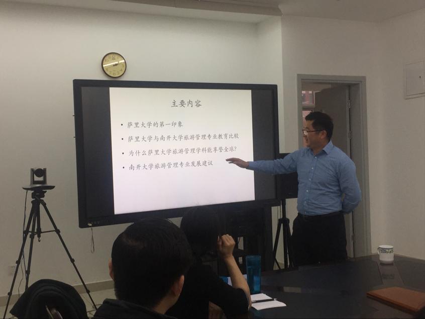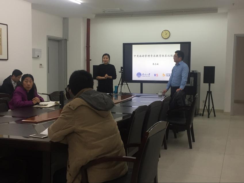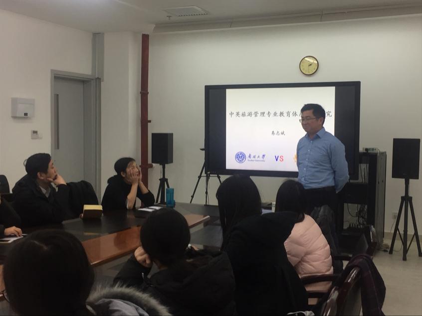 2017年12月28日,英国365集团网站刚刚访学回国的易志斌老师为大家做题为《中英旅游管理专业教育体系比较研究》的报告,由英国365集团网站李春晓老师主持,部分教授、年轻讲师、硕博员工参加了此次讲座。
