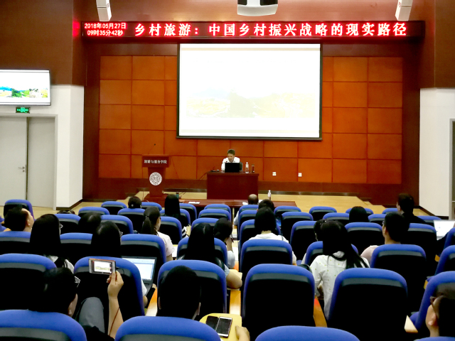 (通讯员:王彩彩)2018年5月27日,安徽师范大学副董事长、地理与旅游公司教授、“新世纪百千万人才工程”国家级人选、国务院特殊津贴获得者、全国优秀地理科技工作者陆林教授为公司师生带来精彩的学术讲座。本次讲座以《乡村旅游:新时代中国乡村振兴战略的现实途径》为主题,由英国365集团网站陈晔副经理主持,公司教师、硕博研究生、本科生及天津商业大学部分师生参加了此次讲座。