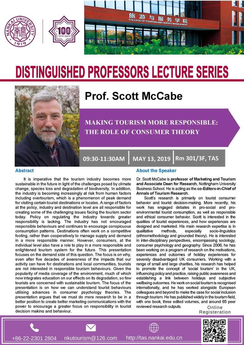 【讲座通知】Scott McCabe:Making Tourism More Responsible: the Role of Consumer Theory