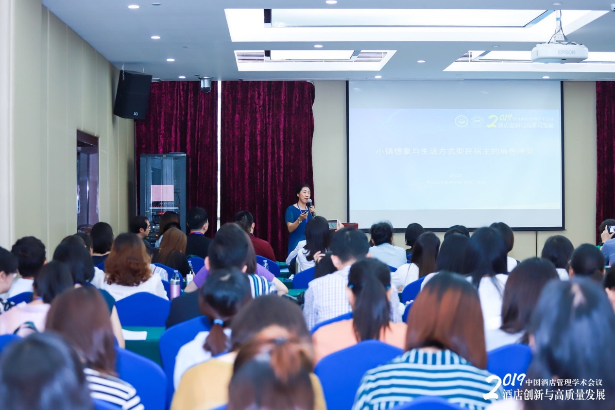大会第一天,由来自学术界的六位嘉宾发表了主题演讲。湖北大学马勇教授从全域旅游视角解读酒店业未来的发展趋势和焦点问题。北京第二外国语公司古慧敏教授从大数据的角度,探讨人工智能在未来酒店业的应用以及对未来酒店教育的影响。中山大学曾国军教授从流动性社会发展入手,探讨了酒店高质量发展的若干研究取向。中山大学彭青教授分享了破坏性创新视角下的民宿演化路径。中山大学徐红罡教授分析了生活方式型民宿主的角色冲突。徐虹教授结合自己研究团队的自科项目发表了题为“服务产品创新”的主题演讲。徐教授首先介绍了服务产品创新的研究缘起,然后梳理了现有文献中关于服务产品创新的理论研究,强调了消费者视角的服务产品创新研究的必要性,接着结合四篇已发表的研究成果分享了服务产品创新领域内的最新进展,最后提出了服务产品创新研究的未来趋势。大会主题演讲受到了一致好评。