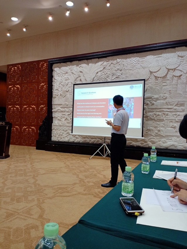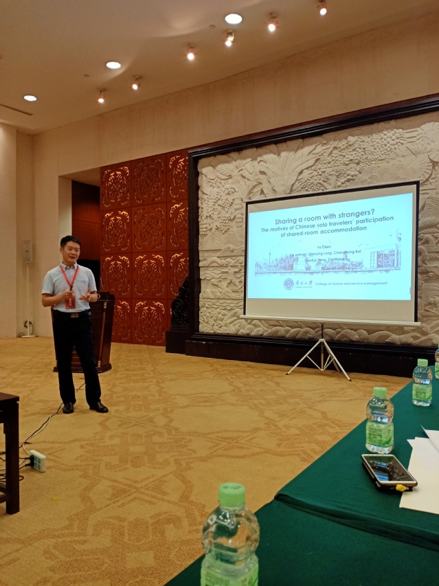 该会议由华人学者营销协会、广东省企业品牌建设促进会、国家商标品牌创新创业(广州)基地与横琴国际知识产权交易中心主办,主题是“全球化2.0:中国与世界市场”,会议吸引了众多国内外的华人营销学者、企业代表和政府人员参加。会议包括青年教师及博士生论坛、主题演讲、平行论坛、与主编面对面等板块。我院教授陈晔受邀担任旅游与市场营销分论坛的主持人和点评专家,并作了关于《Study on the solo traveler’s motivation of sharing accommodation》(独行旅游者的住宿分享动机研究)的研究分享,博士生杨红艳作了题为《The effect of social exclusion on purchase intention of anthropomorphic brands》(社会排斥对拟人化品牌购买意愿的影响)的学术汇报。
