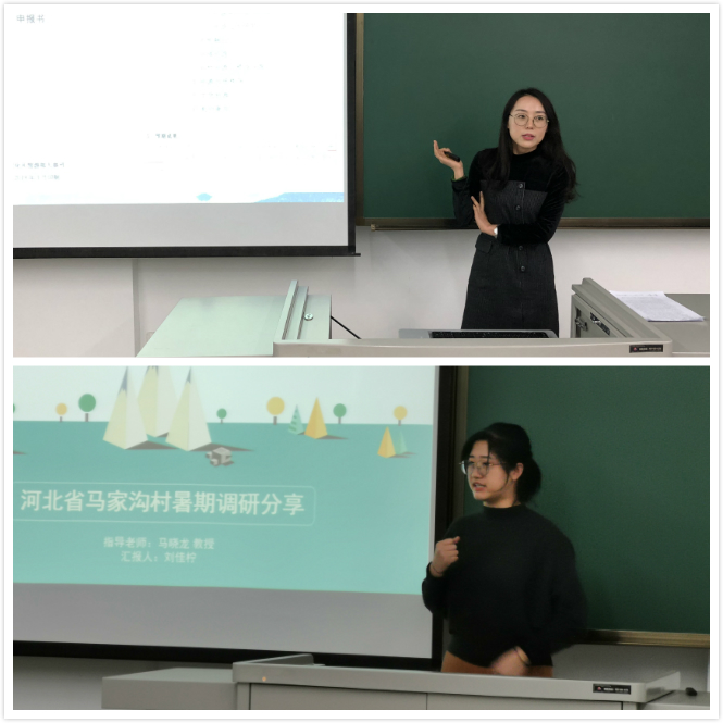 然后,刘佳柠代表马晓龙教授带队的暑期调研团队进行调研成果分享。团队前往河北省马家沟村,围绕《乡村旅游农户从业生计选择及影响因素》主题开展。共分3次进行,对“国学村”马家沟村的乡村旅游发展历程、农户参与旅游活动现状进行了调研和归纳,结合文献对访谈资料进行编码分析,得到了影响农户选择旅游生计的资产、外部刺激和个人因素。