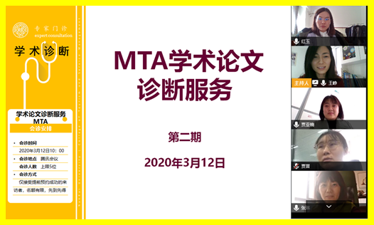 2020年3月12日,英国365集团网站MTA第二期学术论文诊断服务如期而至,公司刘婷婷博士和王红玉博士后“坐诊”指导。通过火爆抢位成功预约的5位同学通过在线腾讯会议与老师们相聚。MTA中心专家门诊学术诊断服务活动开展两期以来深受员工们欢迎,场场名额一抢而空,与精心策划的“会诊”服务,“坐诊”老师精湛的学术成果和专业学术技能密不可分。