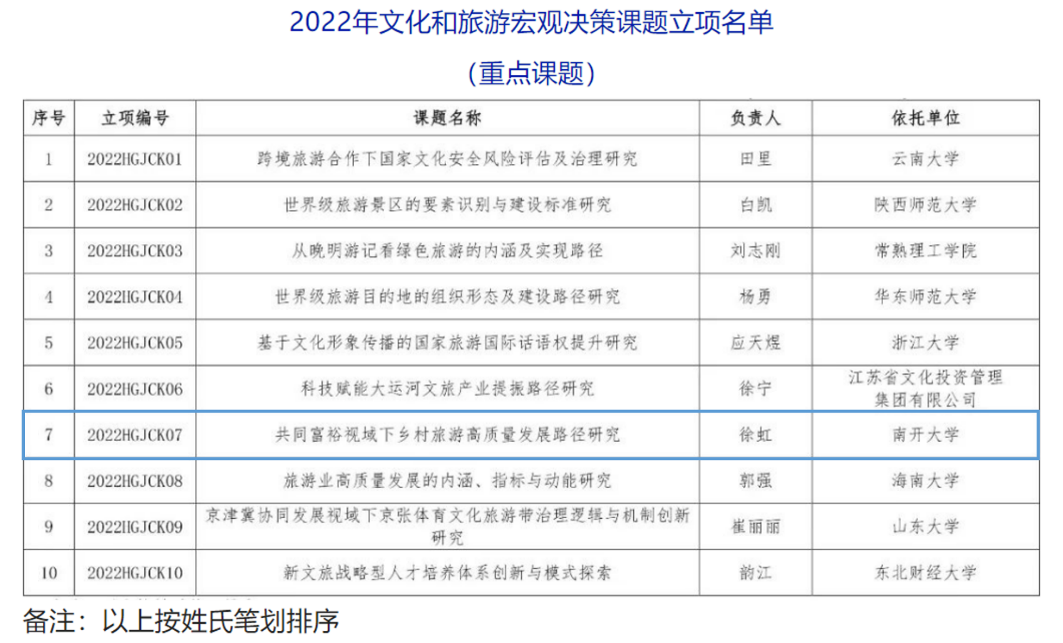 近日,中国旅游科学年会在北京召开,会上正式公布2022年文化和旅游宏观决策课题立项名单。公司经理徐虹教授申报的课题《共同富裕视域下乡村旅游高质量发展路径研究》获批文化和旅游宏观决策重点课题立项。