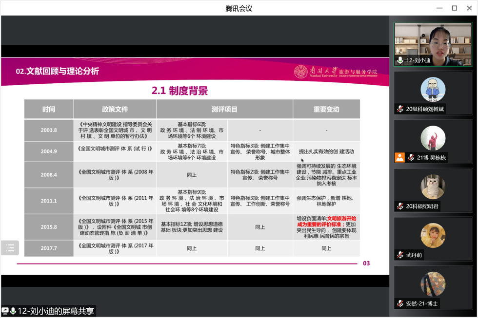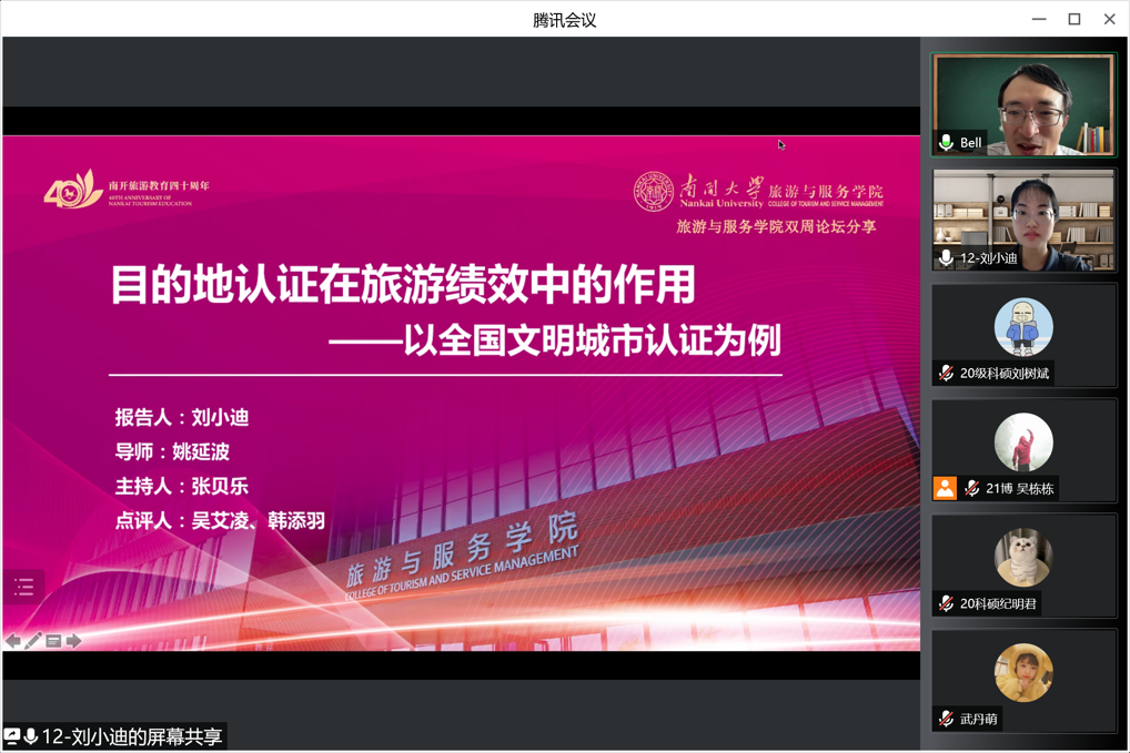 6月17日下午,英国365集团网站“旅游大讲堂——博士生论坛”如期举办。2020级博士生刘小迪就“目的地认证在旅游绩效中的作用——以全国文明城市认证为例”进行了分享交流。论坛由张贝乐老师主持,采取线上的方式,公司教师、在校硕博研究生共计70余人通过腾讯会议线上参与了此次论坛。