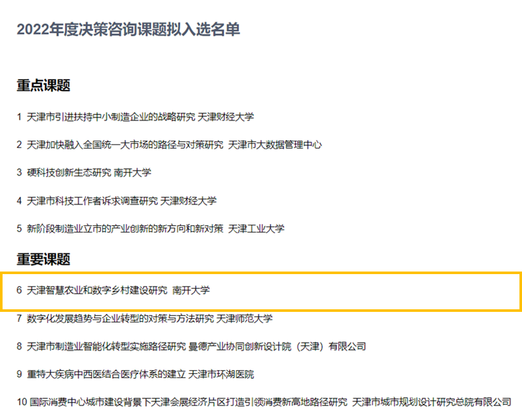 (通讯员:吕芳冰)近日,2022年度天津市科协决策咨询课题入选名单公布,公司于海波副教授申报的《天津智慧农业和数字乡村建设研究》获得重要课题立项。于老师持续关注智能社会建设背景下的乡村振兴研究,致力于立足旅游管理科研工作服务地方政府决策咨询,提升公司科研工作影响力。