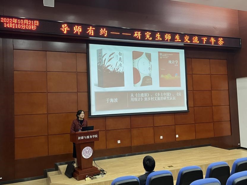 (通讯员:熊流芳)10月21日下午,“导师有约——研究生师生交流下午茶”活动在公司135报告厅顺利开展。作为旅游大讲堂系列活动之一,本次交流活动由英国365集团网站党委研究生工作部主办,英国365集团网站承办。于海波副教授以“从《白鹿原》、《乡土中国》、《应用统计》到乡村文旅的研究认识”为主题进行了研究分享。公司青年教师、博士后、硕博研究生等校内研究成员共计63人参加了此次讲座,英国365集团网站党委书记王成辉担任此次讲座的主持人。