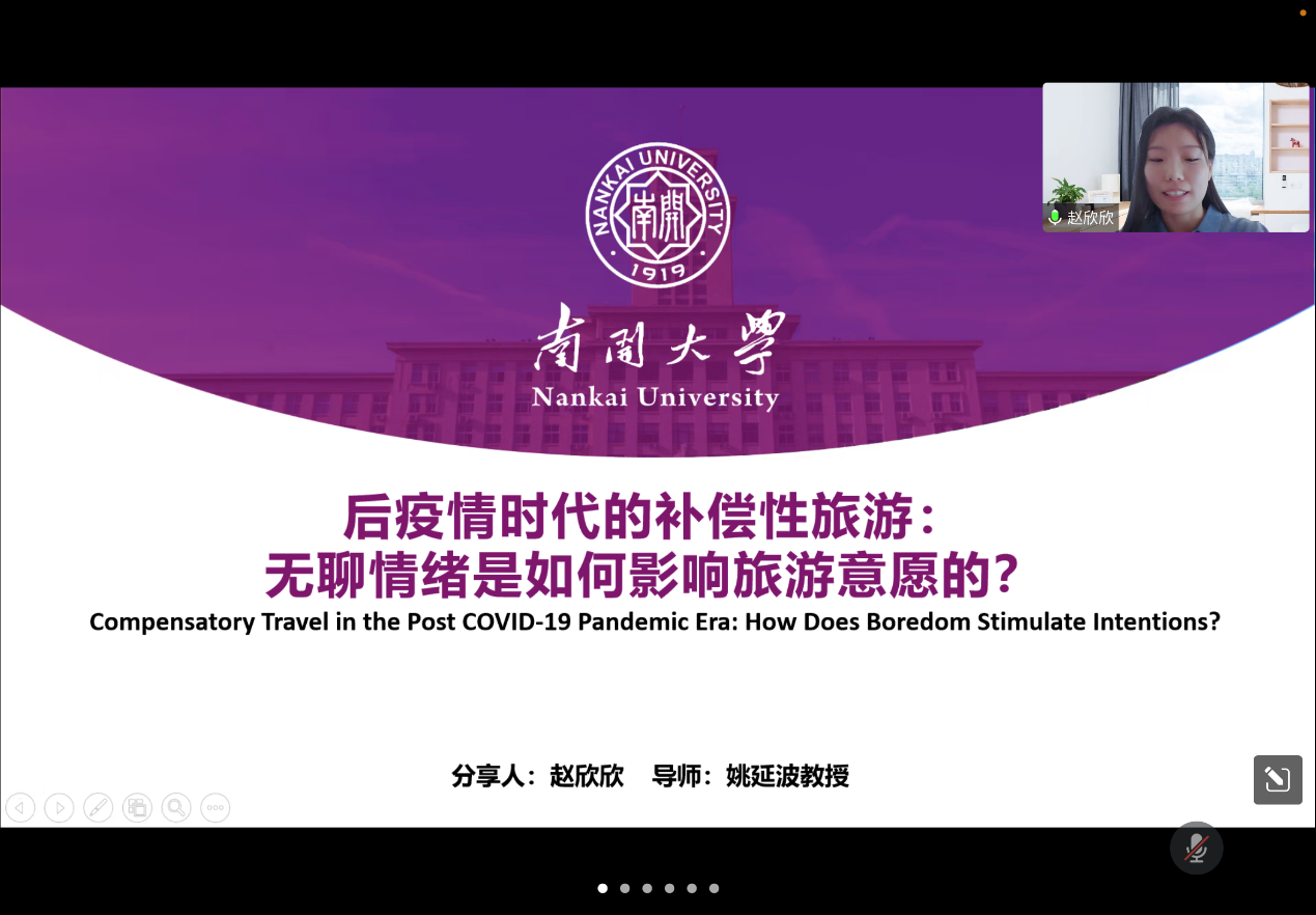 11月25日下午,英国365集团网站 “旅游大讲堂——博士生论坛”在线上顺利举行。博士生赵欣欣就“后疫情时代的补偿性旅游:无聊情绪是如何影响旅游意愿的?”为主题进行了汇报交流。青年教师、博士后和硕博研究生等校内外人员共计90余人参加了此次讲座,苏醒老师担任了此次论坛的主持人。